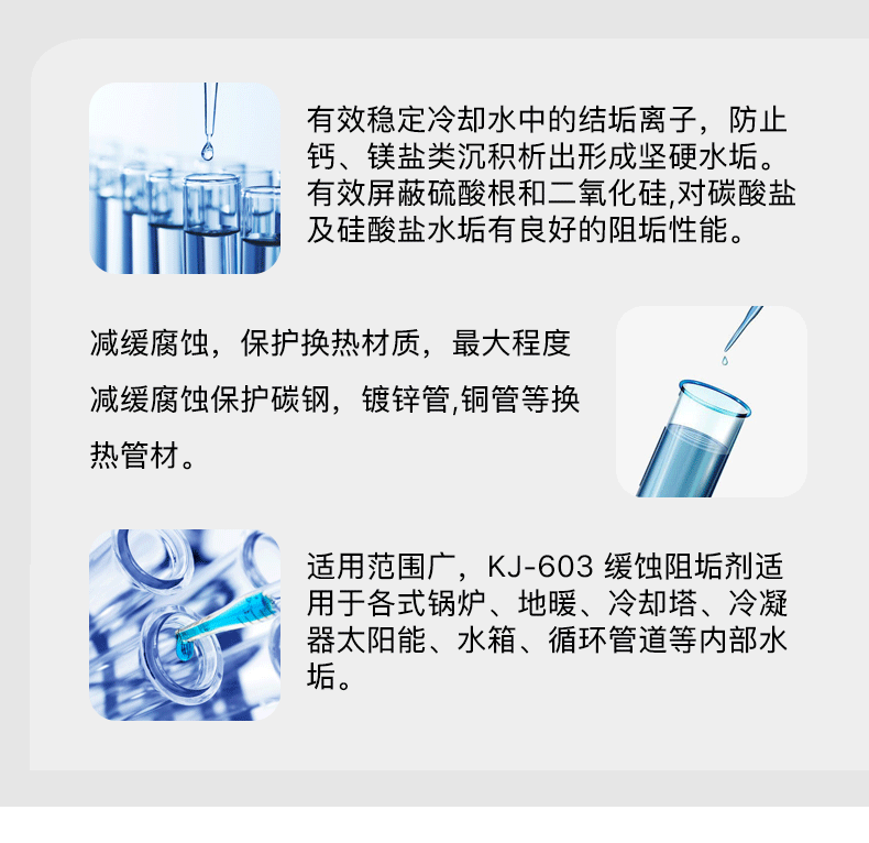 4、对各种金属具有强力的缓蚀作用,药剂经过渗透,也可以对垢下金属也起到缓蚀的作用;