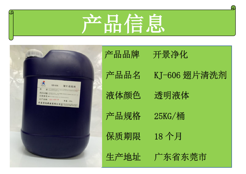 KJ-606 翅片清洗剂 用途:接触翅片表面后产生泡沫,使内层翅片的污垢被泡沫带出至表面,能彻底清洗多层翅片污 垢。