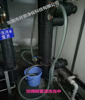 清洗空调主机使用药剂采用KJ-609粘泥剥离剂对冷却水/冷冻水系统的管道,开泵循环清洗6-10小时,对全系统的管道内壁作杀菌剥离粘泥处理。在采用KJ-601除垢剂对冷却水/冷冻水系统的管道及设备进行化学清洗,KJ-601对铁锈等金属氧化物具有很强的络合能力,…